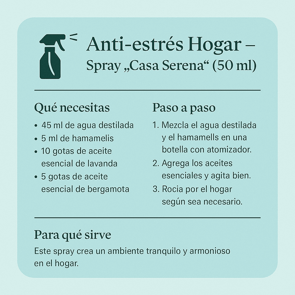 y más de 50 fórmulas rápidas y seguras listas para aplicar en tu día a día. Desde mezclas para dormir profundo, hasta rutinas para calmar la ansiedad, subir la energía o mejorar tu piel… todo explicado en fichas simples, paso a paso.